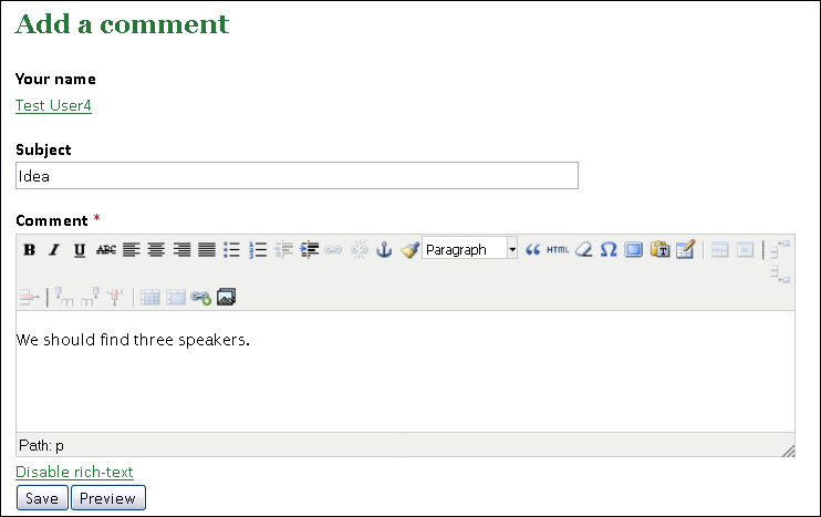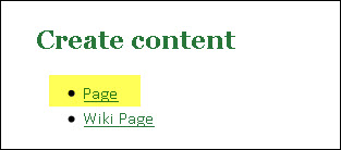 Wiki pages: Internal discussion takes place on wiki pages, which are not visible to the public. To create a new wiki page, look for the block “Create content” on the left and click “Wiki page.”