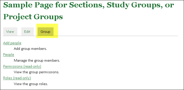 Officers of sections, project groups, or study groups can edit their pages and add information about their section or group, such as terms of reference, names of officers, or descriptions of activities. This information is visible to everyone on the internet. Simply click the Edit tab and the edit mode opens.