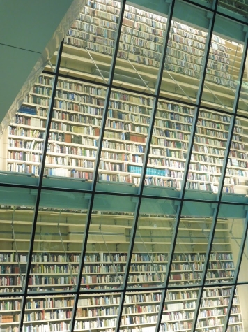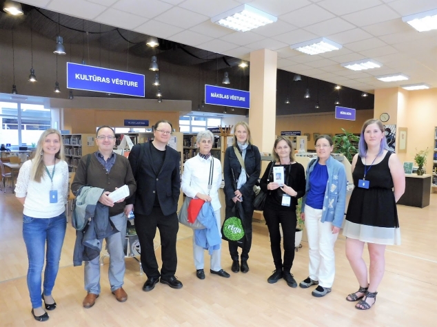 Nyolc vezetett túra közül választhattunk, én természetesen a városi könyvtárat választottam: a Rīgas Centrālā bibliotēka a helyi önkormányzat fenntartásában működik, központi épülete egy sokemeletes házban több szintet foglal el, a liftből szép kilátás nyílik a városra. 26 fiókkönyvtár és 3 kölcsönzőpont is tartozik hozzá, a legrégebbi lett közkönyvtár 1906-os alapítással, ugyanazokkal a szolgáltatásokkal, amelyek itthon is jellemzik közkönyvtárainkat, nagy hangsúlyt fektetnek a helyismereti és gyermekirodalomra. Van egy gyönyörű kiállítótermük, a Művészeti és zenei gyűjteményben pedig zongora és hangulatos kis előadótér is található. Két kedves vezetőnk közül az egyik egy kórusban énekel, a másik igazi internetes rocksztár egyéni blogjával. Nagyon tetszett egy rajongó rajza Billie Joe Armstrongról (Green Day). Megtudtuk, hogy az egyik legkedveltebb helyi zenekar a Dzelzs Vilks.
