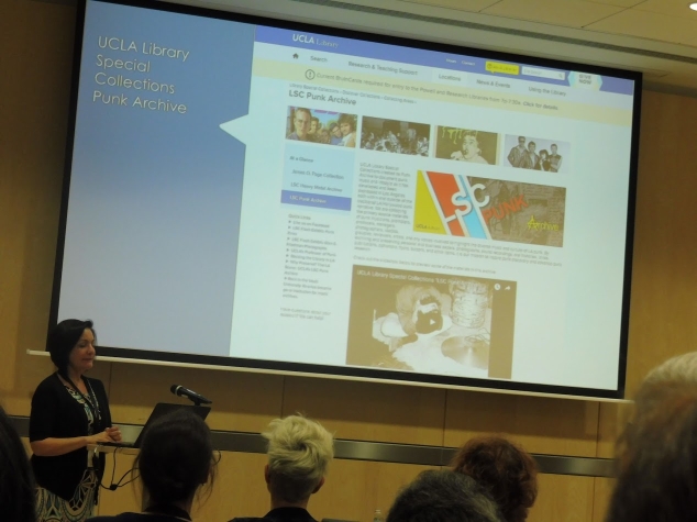Gyöngyszemre bukkantam Callie Holmes és Matthew Vest (UCLA Music Library, Los Angeles) előadásában. A Los Angeles-i Kaliforniai Egyetem (UCLA) zenei részlegének munkatársai könyvtáruk nem szokványos gyűjteményeiről beszéltek, pl. a szovjet kiadású kottákról, hip hop gyűjteményükről, valamint a punk archívumról (LSC Punk Archive), mely LA és környékének punkzenéjét és életmódját dokumentálja, többek között zenészek, roadok, promóterek, producerek, grupik stb. személyes dokumentumai, fényképek, hangfelvételek, szóbeli történetek, zenék, kiadványok, folyóiratok, szórólapok, fanzinok és egyéb elemek archiválásával, megőrzésével, céljuk a punk felfedezése és a punk kutatás elősegítése. Sőt az egyetem egyik oktatója, a punk professzor Jessica Schwartz kurzust tart és zenél is.