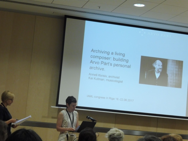 Kai Kutman és Anneli Kivisiv (Arvo Pärt Centre, Laulasmaa) inspiráló előadásában áttekintést kaptunk a világhírű Arvo Pärt észt zeneszerző munkásságáról, az Arvo Pärt Központ alapításáról, fejlesztéséről, gyűjteményeiről, osztályozási rendszeréről, archiválási tevékenységéről és jövőbeli terveiről. A központot Arvo Pärt és családja alapította azzal a céllal, hogy lehetőséget teremtsenek a zeneszerző kreatív örökségének megőrzésére és megismertetésére szülőföldjén. Az archívum a zeneszerző teljes kreatív örökségét és a hozzájuk kapcsolódó információkat és dokumentumokat egyesíti mind fizikai, mind digitális formában, s az teszi egyedülállóvá, hogy maga a zeneszerző is részt vesz annak összeállításában. A digitalizált adatokból adatbázis készül, az APIS (a Arvo Pärt Infosystem) nemcsak teljes áttekintést nyújt az archív anyagokról, hanem lehetővé teszi az események és dokumentumok közötti kapcsolatok feltérképezését is. Az APIS egy része online is elérhető lesz.