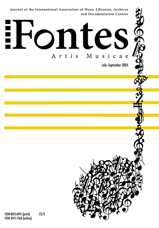 The latest issue of Fontes artis musicae, Volume 72, no. 3 (July-September 2025) has been published. It may be accessed via Project Muse for subscribers or via the IAML Web Site for members. The contents of the issue are as follows: