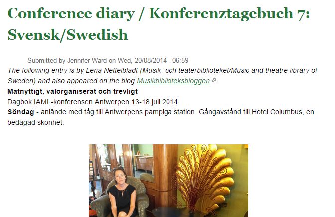 We hope you had a great week at IAML/IMS 2015 at The Juilliard School! IAML.info is seeking posts from Congress attendees reflecting on their experience at the 2015 Congress in New York. In 2014, we had 15 posts representing members from 15 national branches reflecting on their experience in Antwerp. This year we would like to receive submissions from as many nations as possible to represent the diversity of IAML membership. Submissions need only be 1-2 paragraphs, written in your native language, and photos to accompany your written submission are encouraged. Send your conference diary to webeditor@iaml.info and we’ll post it to the website. You may browse past conference diaries here.