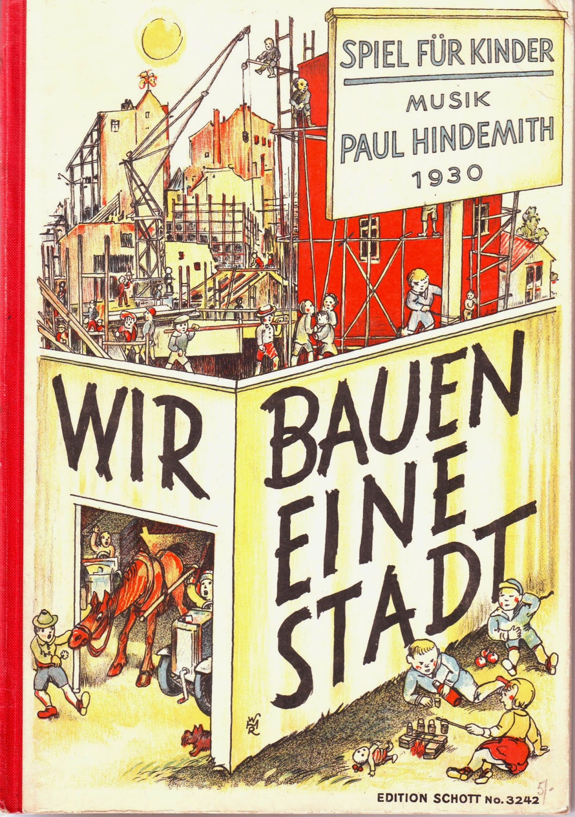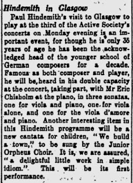 April’s object of the month is a copy of Paul Hindemith’s Wir Bauen eine Stadt (1930), songs composed for children and given its world premiere in Glasgow in November 1930. Our archive contains the score used by pianist and composer Erik Chisholm (a former student of the Conservatoire) who accompanied the Orpheus Junior Choir (now the Phoenix Choir). The composer himself performed a number of sonatas with Chisholm earlier in the evening; his dedication in the score reads: ‘with hearty thanks for the beautiful introduction to Glasgow’ – Paul Hindemith Nov. 30 [1930].