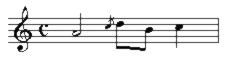 | g | acciaccatura (without rhythmic value, precedes the note name) | ![]() |